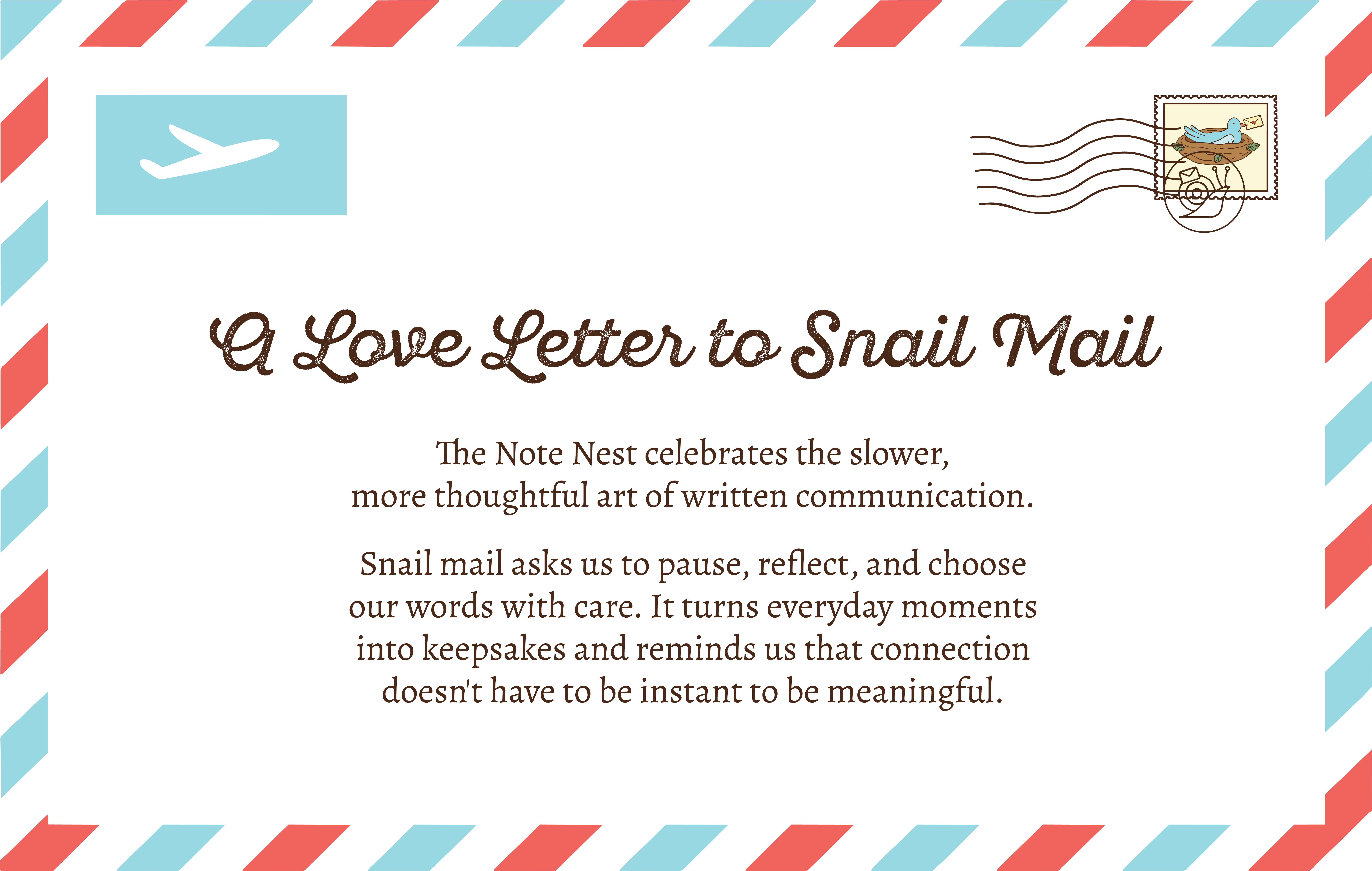 The idea for The Note Nest grew from a lifelong love of greeting cards, letter writing, and community connection.